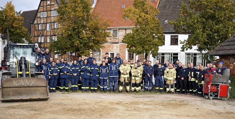 Wir haben zusammen mit der Freiwilligen Feuerwehr Wismar Altstadt, der Berufsfeuerwehr Wismar und dem THW Ortsverband Wismar Sandsäcke gefüllt.